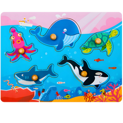 Kolorowe ilustrowane drewniane puzzle z kołeczkami! Drewniana łamigłówka dla dzieci w wieku 12m+. Idealne połączenie nauki i zabawy.